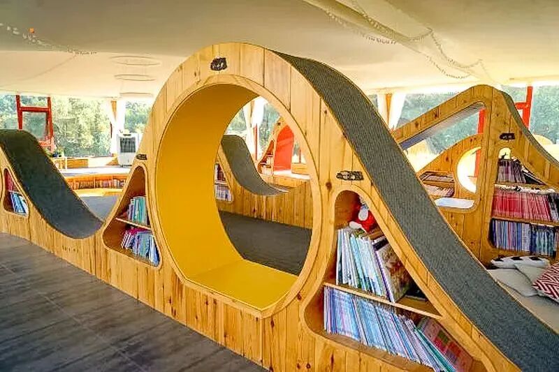 作为主题公园,这个专门为适龄小朋友们准备的图书馆,真心是用心的福利。300平米的宽敞面积,数千本图册绘本适合各个年龄段的小朋友来进行借阅,喜欢读书的孩子们可以进入其中,进行的享受书海。里面自由的书架结构和软软晒着太阳的沙发榻,小朋友们可以用自己最舒服最放松的方式读书,这里不让大人进去,这里是小朋友们的专属地方。