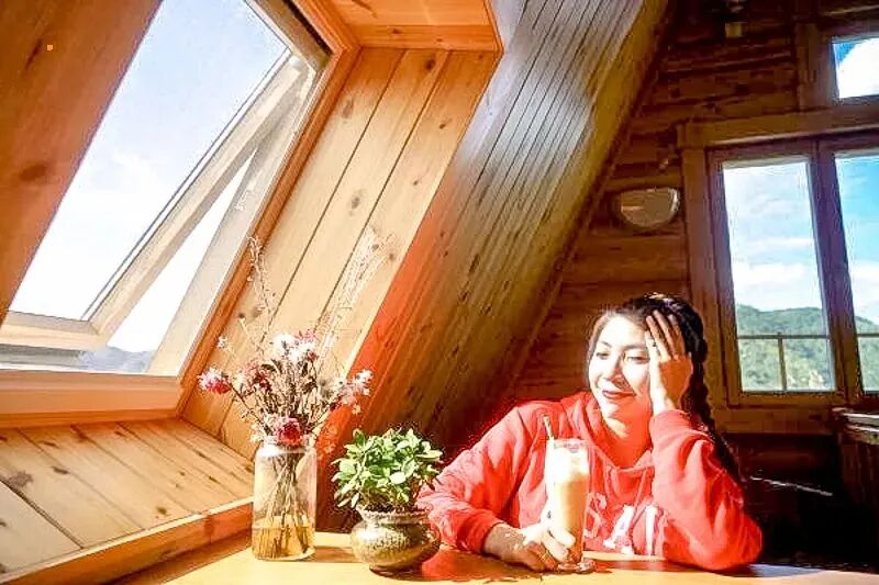 这里是京城最高的咖啡馆1473,寓意很有趣1472米的海拔+1米的情怀。来自芬兰原装的木屋一件一块的从山底运至山顶,整个建筑极具北欧特色,在山谷中打眼又好看。