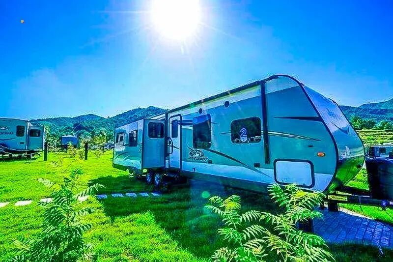 海坨山谷——位于京冀交界,房车营地总占地超过6000平米,单位房车位占地约为600平米,内置美国进口房车88辆,自驾房车营位12个,是中国最大的房车露营公园。极力打造的是瑞士小镇的风貌,一眼望去满眼绿色苍翠欲滴,山峰层峦耸翠,犹如仙境。山谷气候清凉,夏季大约只有20℃,十分适宜夏季避暑,所以每年的6-9月都是旺季。沁爽清凉、广袤的绿草坪、簇拥的繁花似锦、碧湖蓝天、星空浩瀚都是这里的夏。