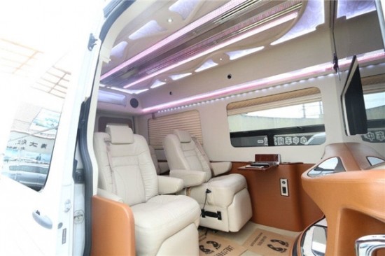 内部方面则是采用了暖色木纹装饰,以及简约的云各顶灯和吧台式隐藏座椅、电脑桌等等,并且全车覆盖豪华游艇柚木地板,中排航空座椅并搭配加热和按摩功效,而乘客舱后排则是三人电动座椅了,拥有着42寸可升降超薄电视,以及蓝光高清DVD等等的娱乐便捷设备和功能等,还可以遥控启动系统,轻松的开启陆地头等舱般的舒适体验,以上就是总结的奔驰斯宾特的全部内容,总之奔驰斯宾特会为人们打造最极致的驾驶新体验。