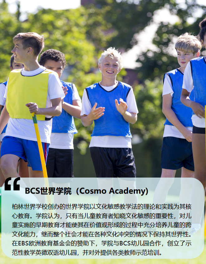 德国国际儿童教育论坛(Ice Forum)位于柏林,成立以来致力于推动全球儿童教育领域的交流和发展,在德国以及欧洲其他国家如瑞士、英国都有合作关系。合作伙伴包含了专家团队、政府、非营利组织、国际组织、各类教育协会、大学、国际学校、以及国际幼儿园和特色幼儿园。其中,德中的儿童教育交流项目包含了国际幼教人才交流项目,幼儿园国际社区和国际交流,中小学可持续发展教育,幼教专家交流访问,以及儿童教育跨国对比研究。