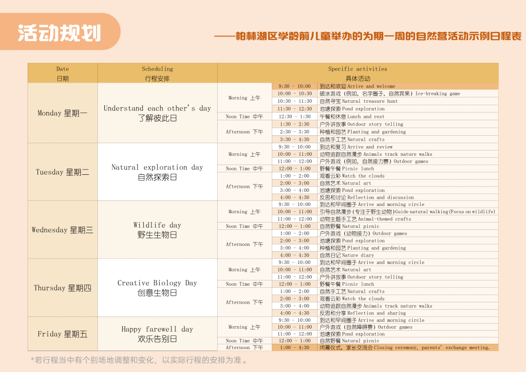 【户外教育】我们的营地课程旨在促进环境意识和欣赏。孩子们将学习有关当地植物和动物、生态保护以及户外生存技能的知识。