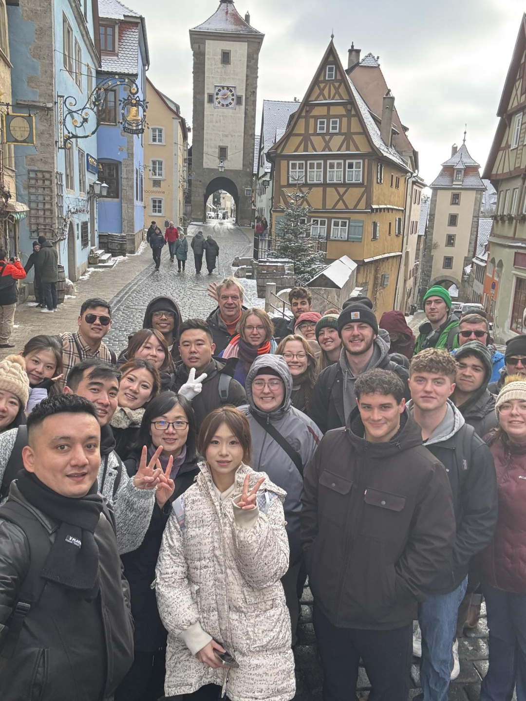 1月9日,访学交流团启程赴德,11个小时的长途飞行跨越千山万水,于次日抵达法兰克福,与美国阿尔弗莱德大学学生汇合,共同组成国际联合研学团队。当中国青年的朝气遇上美国学子的热情,双方的疲惫被相见的喜悦冲淡,一场跨国友谊就此开始。