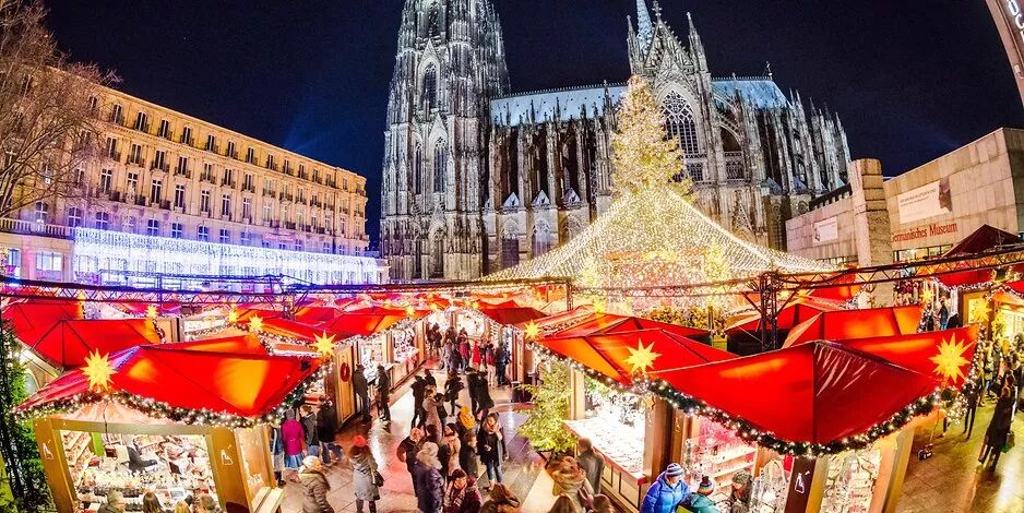 科隆圣诞市场位于最出名的地标科隆大教堂(联合国教科文组织世界遗产)脚下,这里有一棵巨大的圣诞树,上面有各种灯光,红丝带。空气中弥漫着香料和糖果的怀旧香气,来一杯glühwein,听着现场乐队演奏的圣诞节曲调,即使寒冬腊月都感觉暖暖的,难怪科隆的圣诞市场每年吸引数百万游客。
