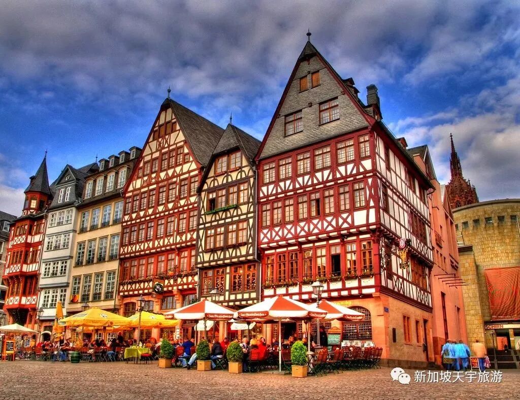 #罗马广场:是法兰克福老城的中心,位于美茵河以北,也是旧市政厅的所在地。广场建于中世纪,二战时被炸毁,战后几乎全部重建,如今是法兰克福唯一一个仍然保留着中古街道面貌的广场,与现代化的法兰克福形成了强烈对比。