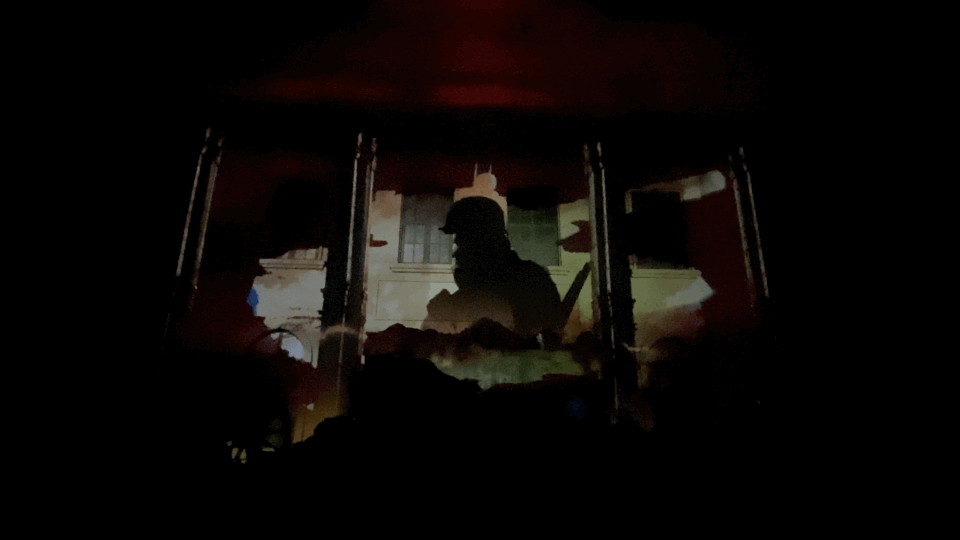 我们用晦暗、破碎、混乱的布置再现被战火践踏过的土地,水剩山残,任是英雄泪不干。在这个富足的年代,我们用再创再现的形式去铭记战争的残酷和为祖国付出生命的烈士们。