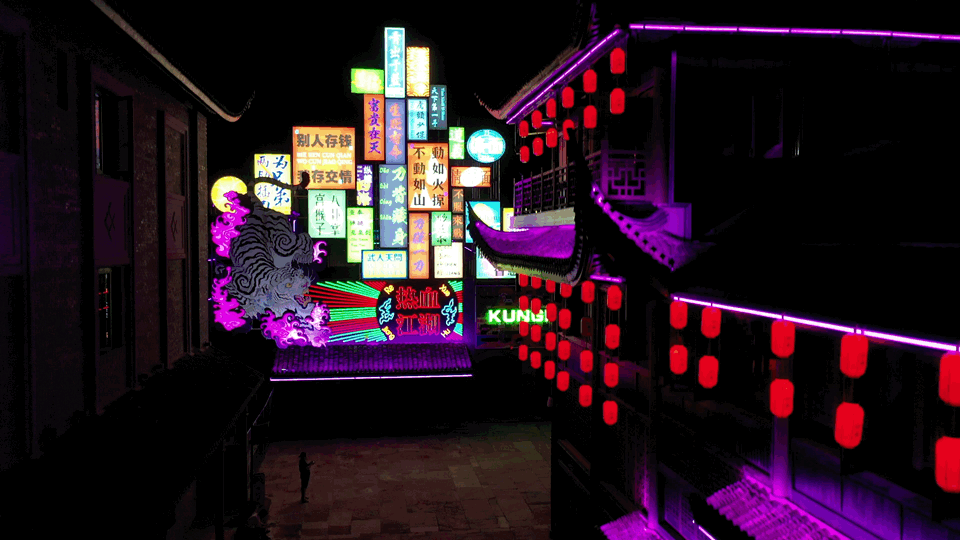 宁波溪口·应梦里景区以溪口民国历史文化为素材,以创新演艺手法为形式,以独特建筑空间,赛博朋克的视觉呈现为载体,打造全新观光休闲体验文旅综合体。
