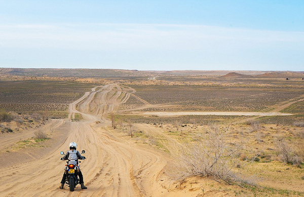 彼得·格里明科在哈萨克斯坦公路上骑行。(网页截图)