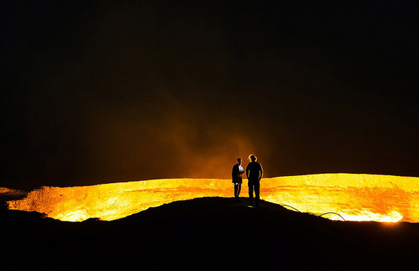 夫妇俩途中遇到许多特别场景,比如在土库曼斯坦看到了“地狱之门”。(网页截图)