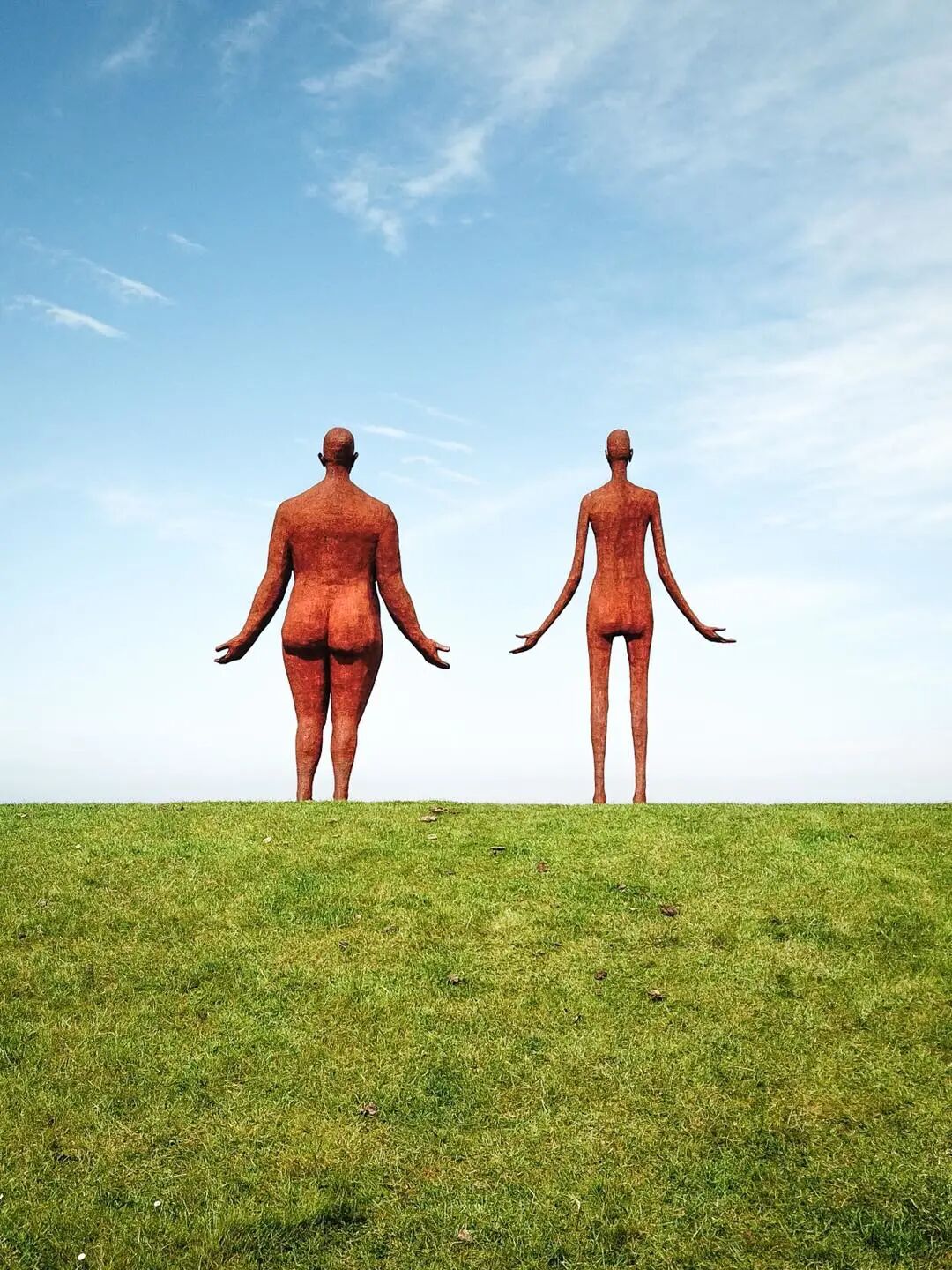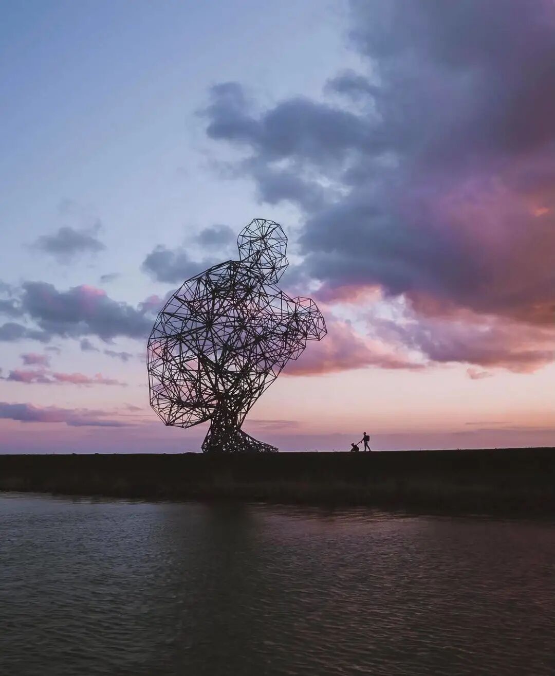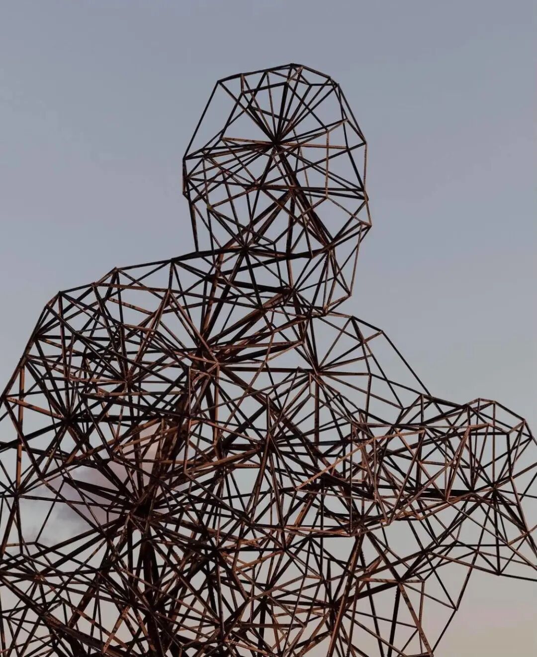 当天气晴朗时,蓝色的天空会反射在钢铁上,在日出和日落时,雕塑会变成一个黑暗的轮廓,对着照亮的地平线。