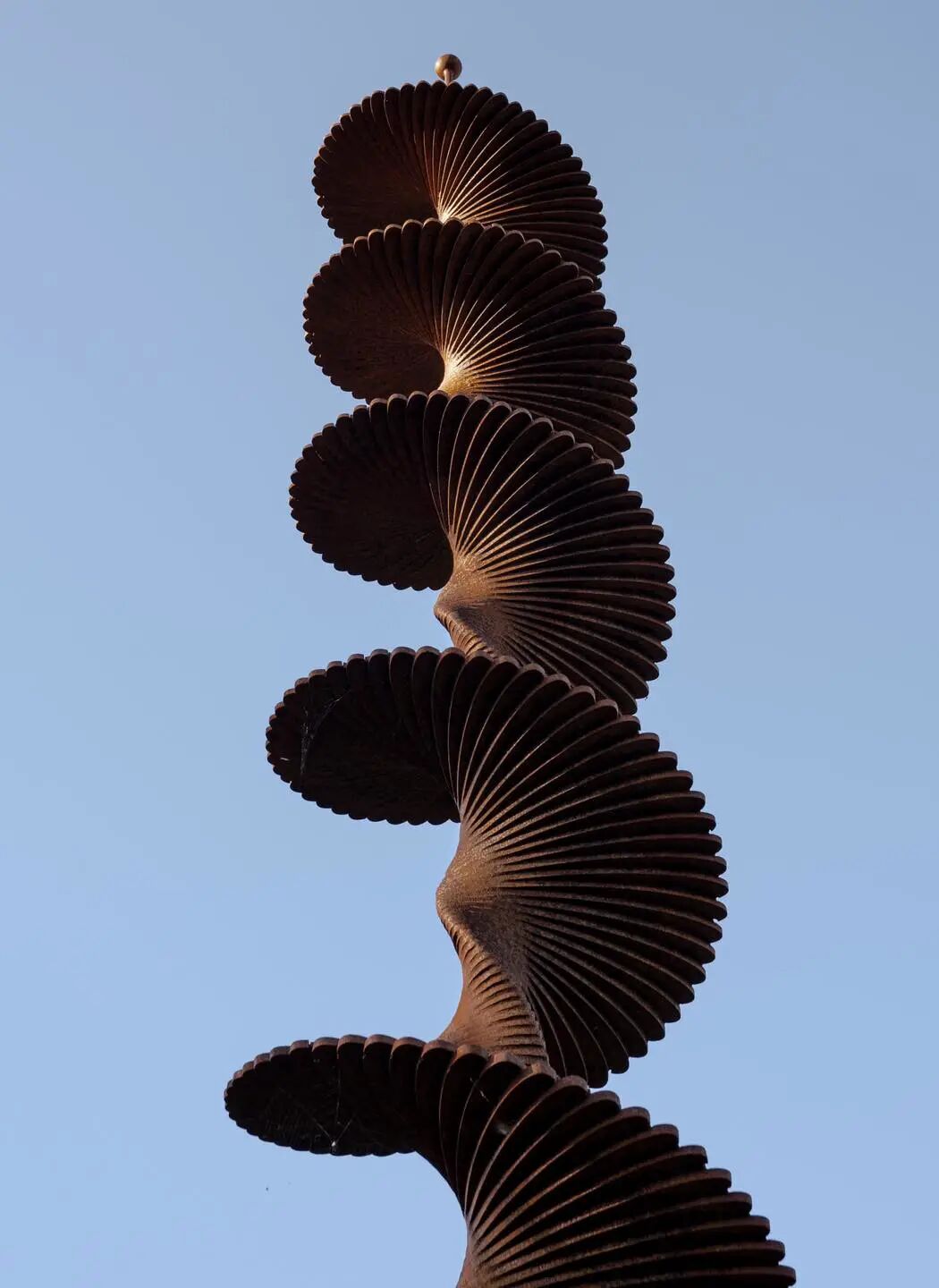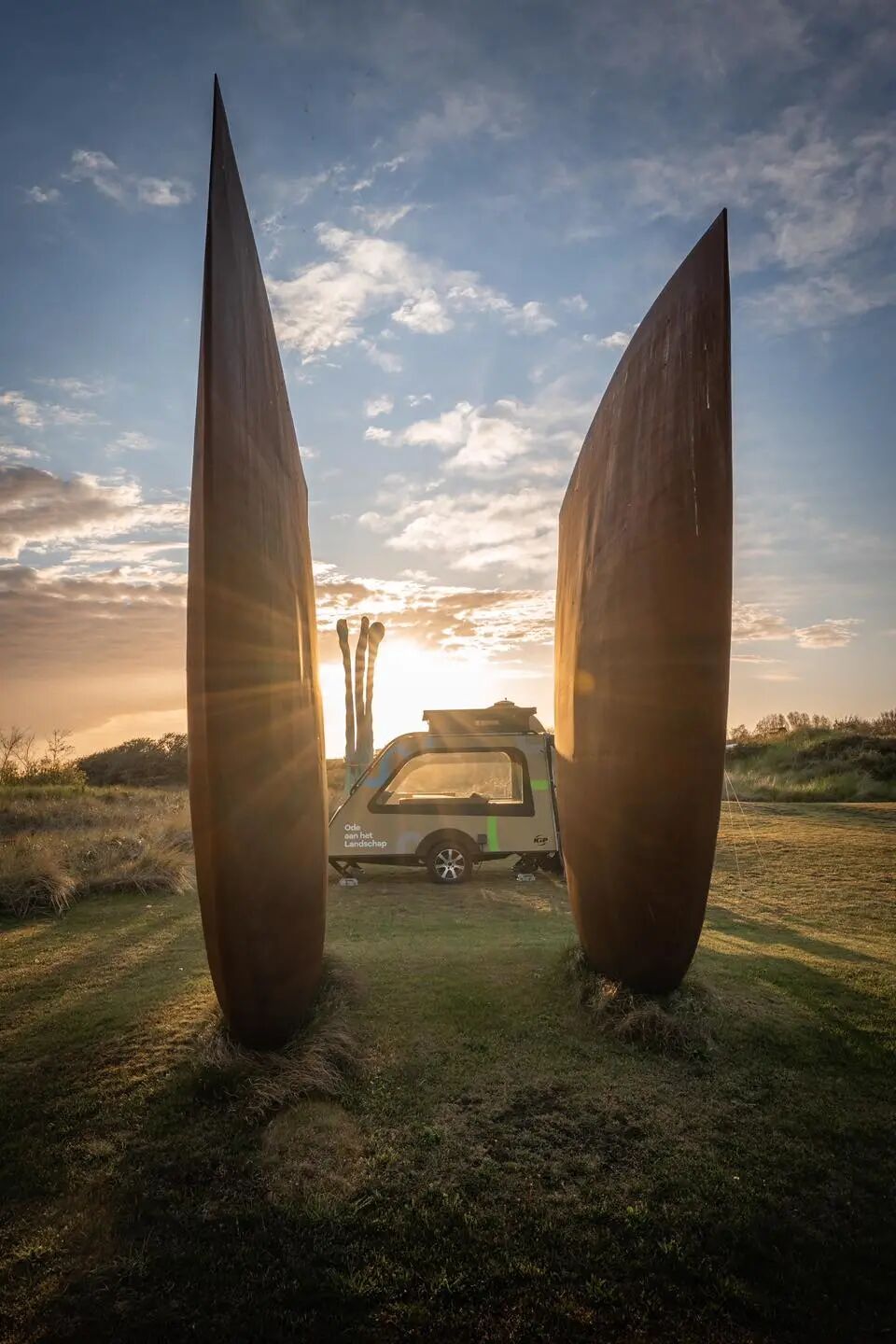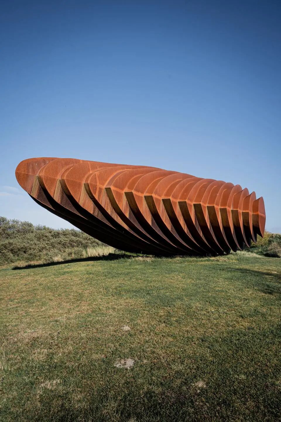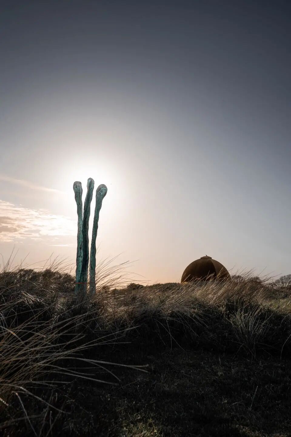 当天气晴朗时,蓝色的天空会反射在钢铁上,在日出和日落时,雕塑会变成一个黑暗的轮廓,对着照亮的地平线。