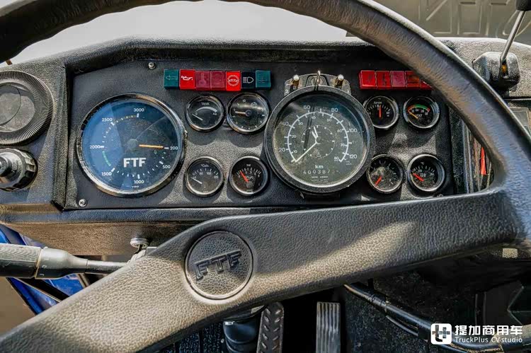翻新完成后,车辆接受了全新的蓝色涂装,并以崭新的面貌呈现在了我们面前。接下来,就让我们好好聊聊这台车。作为荷兰的一家卡车小厂,FTF其实并没有能力自主开发、制造发动机、驾驶室等零部件。依托于组装马克卡车的经验,FTF将底特律柴油机、富勒变速箱买来,并结合英国Motor Panels提供的驾驶室,“攒”出了一台又一台FTF卡车。