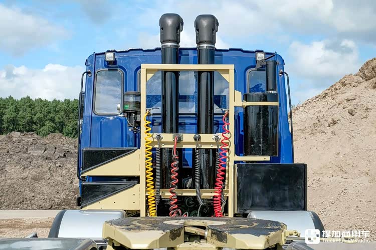 两根高位进气高高昂扬在驾驶室后方,朝前进气,美式风格相当到位