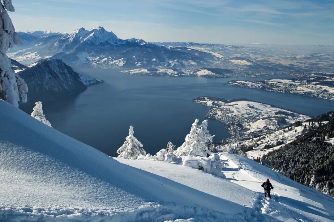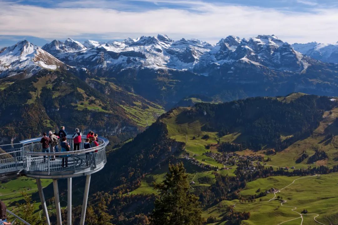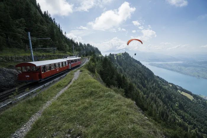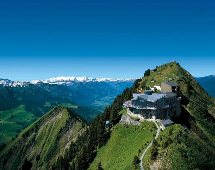 最近的山峰是海拔1922米的Fronalpstock,可以通过缆车或者升降椅登上山顶。从这样壮观的视角,能看到震撼人心的全景,闻名的十大湖泊,下到布龙嫩,上至吕特利,还有皮拉图斯山、瑞吉山、森蒂斯,以及高高耸立阿尔卑斯山脉和中心低地,甚至是远方的汝拉都能尽收眼底。想看到这些美景,也不用太过破费,因为使用瑞士旅行通票,不仅可以轻松前往,还可以免费登山。