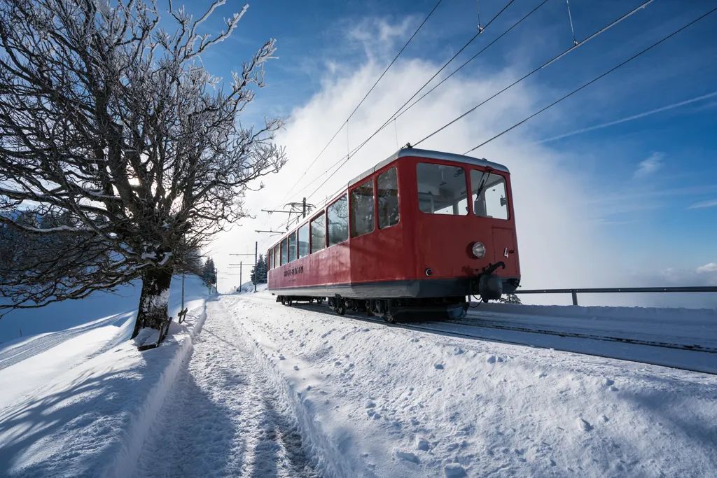 瑞吉山的精彩不止于夏季,在冬季可体验的事物也是数之不尽:有大约35公里平整的冬季徒步小径,从轻松的阿尔卑斯山漫步到2小时全景徒步;三条自助雪鞋漫步小径更是山上冬季体验的理想选择。