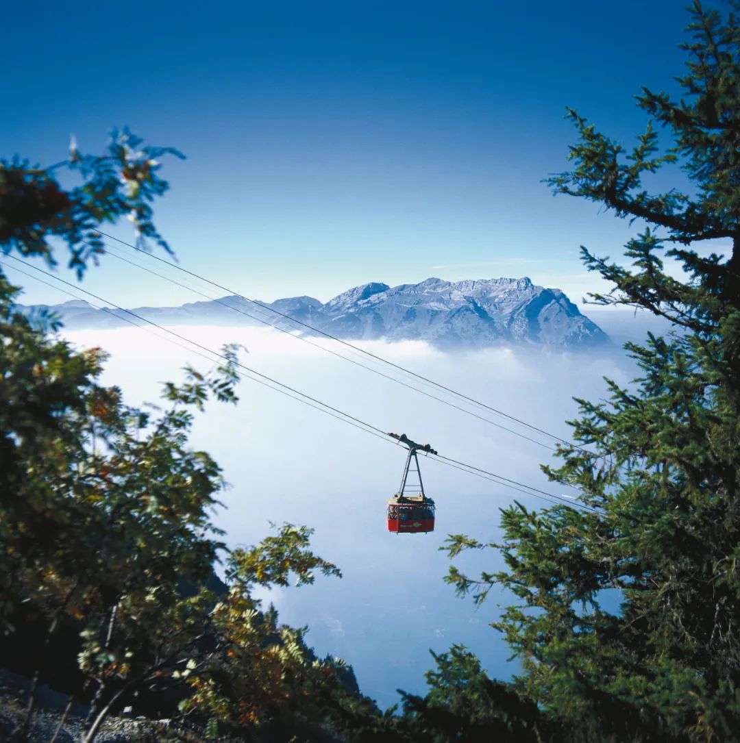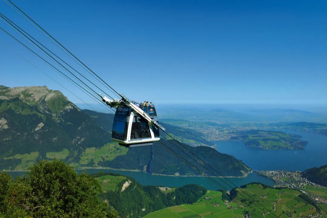 来这里,一边感受风舒适地吹过脸庞,一边欣赏绝佳的美景吧!首先乘坐依然像120年前一样在运行时发出辘辘声的敞篷索道缆车,然后登上未来派风格的CabriO高空缆车车厢顶层。敞篷木制车厢自1893年起就从施坦斯驶往石丹峰。这趟缆车的独特之处就是敞篷车顶平台,站在双层全景车厢的车顶会带给人一种震撼的感觉,近距离感受缆车在立柱之间运行的状态,尽情享受风吹过脸庞的舒适,欣赏壮丽的美景——头顶没有任何缆索遮挡视线。