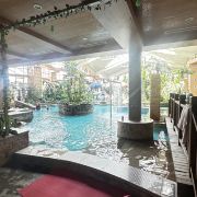 温泉还不错,池子选择很多,还有一些中药池,泡完之后身体热乎乎的,提供的服务也很棒!可以淋浴,还可以休息,还有免费的绿豆水,就是是烫的,夏天喝有点太热了,推荐推荐