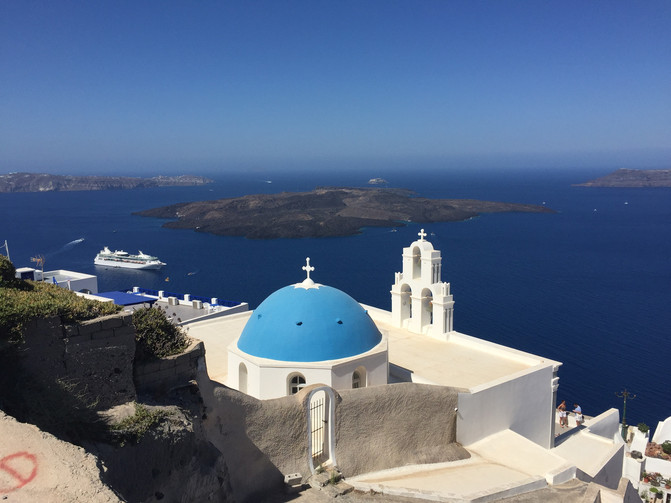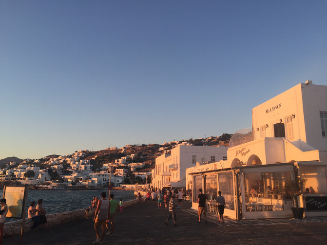 看完历史悠久的古建筑,坐船进入爱琴海,前往米克诺斯岛。