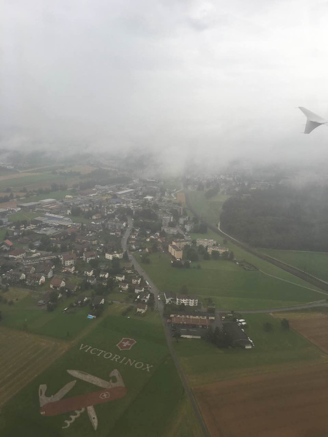 在空中就可以看到下面草坪上的瑞士军刀的图案,还是蛮有特色的。