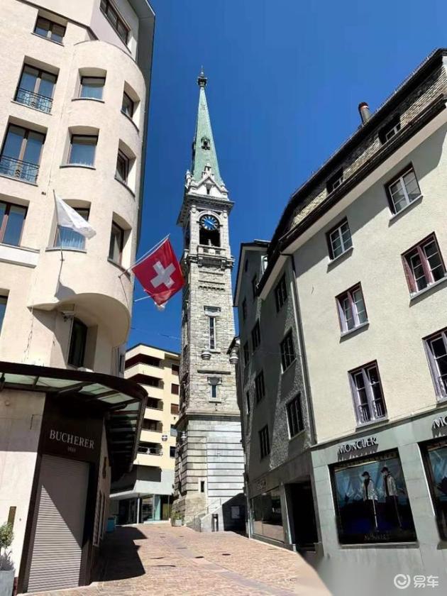 瑞士 周日商店不营业,只能望着橱窗发呆!漫无目的的东看看西瞧瞧,闲逛! 位于 库尔 姆酒店斜对面,见证着 圣莫里茨 历史变迁的12世纪的斜塔。