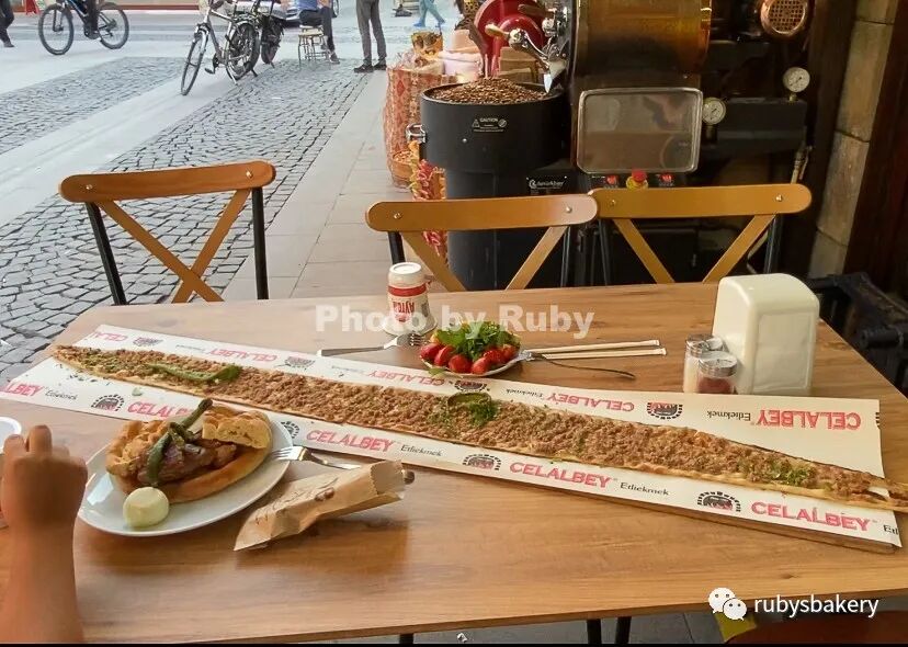 土耳其传统美食,有几百年的历史了。无论长1米,还是圆形的lahmacun,真的是吃一口就会爱上的味道。