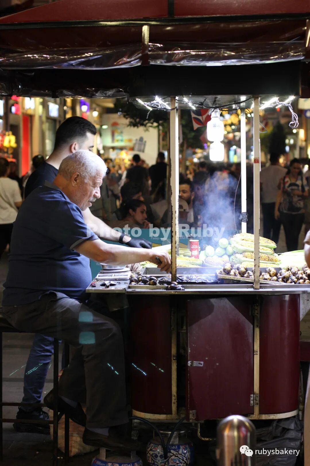 烤玉米一般会撒点糖,盐和辣椒粉。避免在景区买。我在蓝色清真寺买过35里拉,很贵又超级难吃的玉米,三口人都吃了一口就谁也不要吃,扔掉了。在土耳其,美食那么多,胃要留给更好的食物。炒栗子不如国内的糖炒栗子