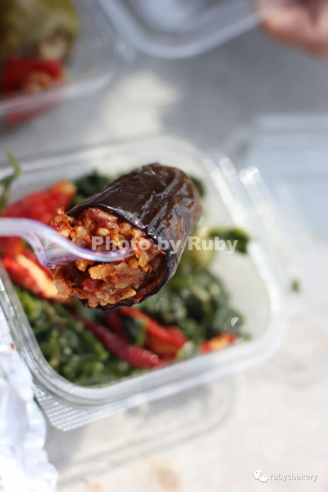 土耳其人也会把米塞在各种蔬菜里(新鲜的茄子,青椒里),然后蒸熟。最经典的是包裹在一个叶子里(很像春卷形状的粽子),包叶子的我不太吃得惯。