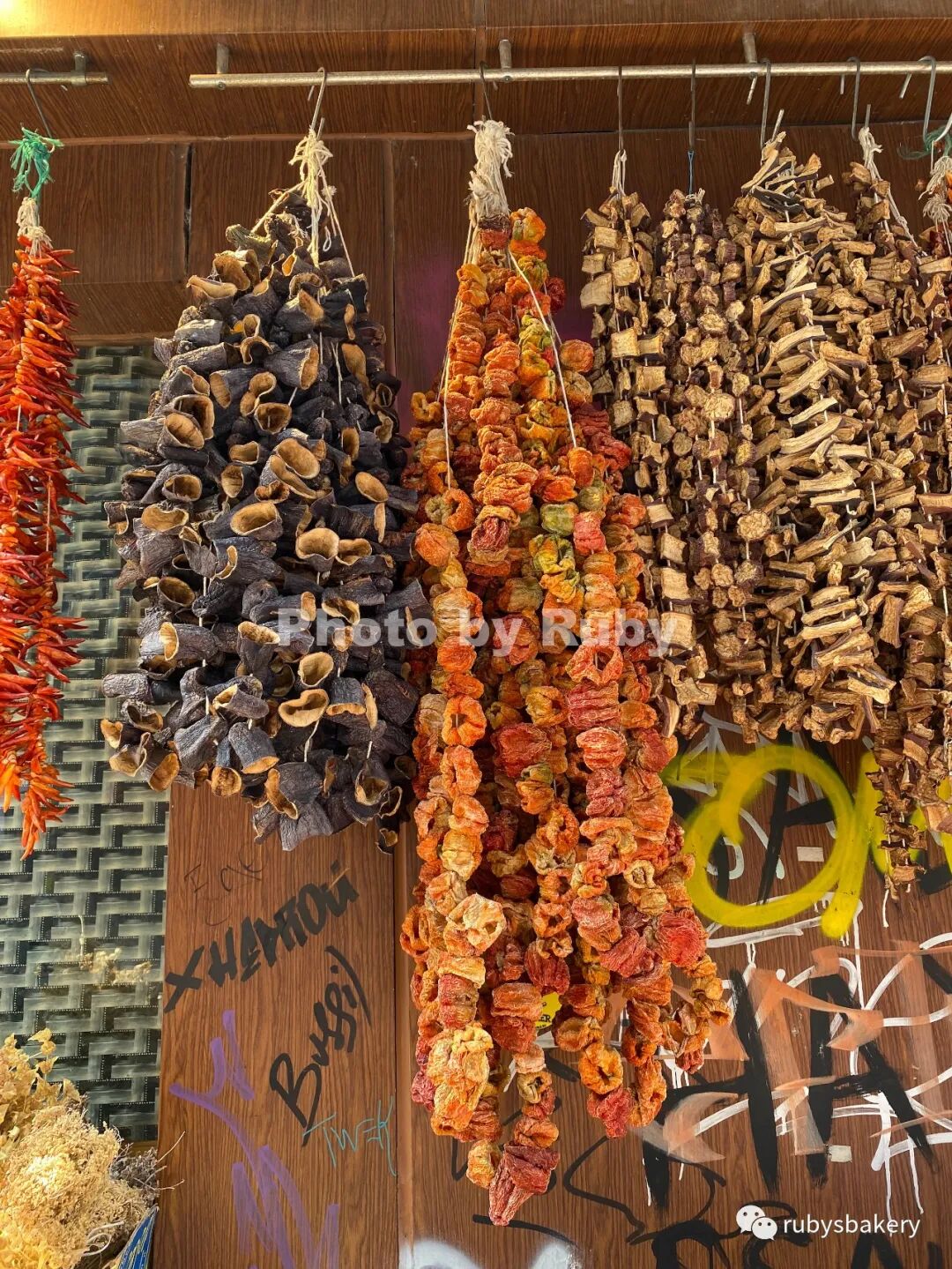 土耳其物产丰富,他们还喜欢把应季蔬菜,挖去肉晒干,可以存很久。去小镇或农村,很多家的门口都挂着晒干挖空的菜。然后塞大米蒸着吃。