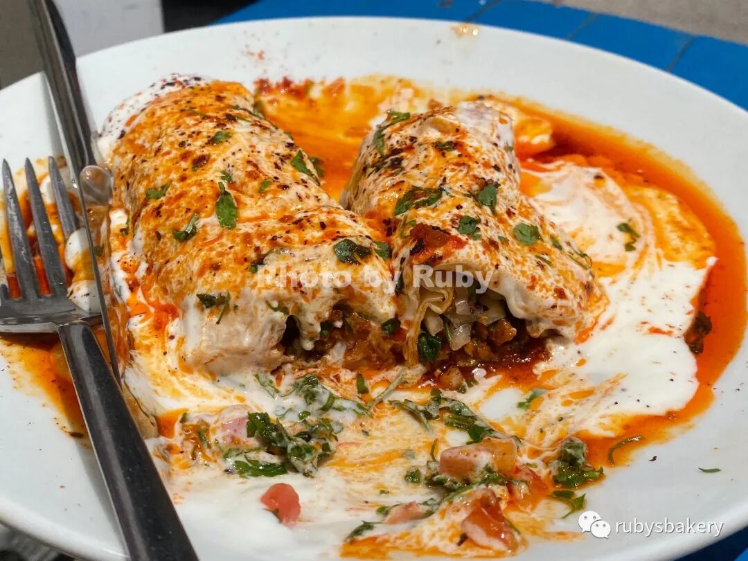 强烈推荐这种淋酸奶的吃法,我家从此在土耳其爱上了淋酸奶的各种面食。后来出了伊斯坦布尔,在别的城市也非常想念,再也没找到淋酸奶吃的gozleme。在卡帕多奇亚和开餐馆的老板交流,才知道,gozleme淋酸奶这种吃法是只有伊斯坦布尔才有的。