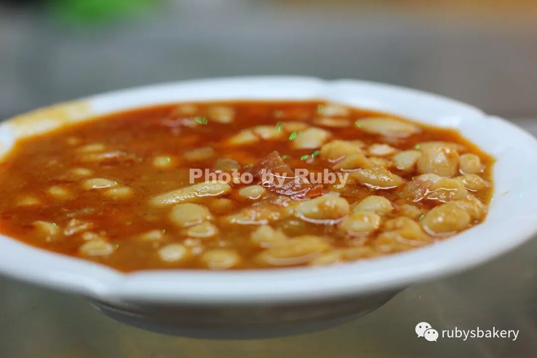 点过几次豆子汤,热乎乎的蘸面包吃。肉吃多了换个口味,才不会腻。