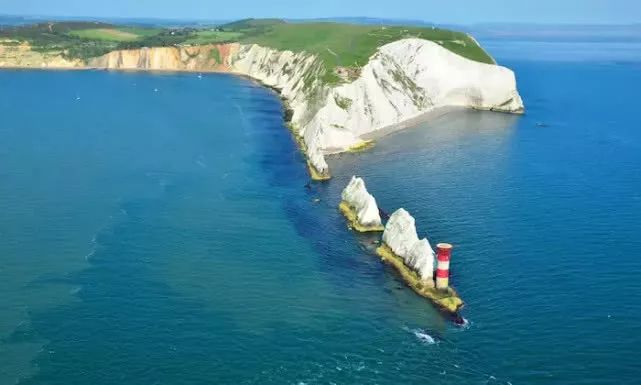 The Needles翻译成中文是“针尖”的意思。正如这个名字一样,远远看去The Needles的三座白岩石就像是从大海中冒出的三个小“针尖”,颇为可爱。