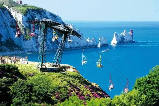 参观完遗迹,还可以从山顶乘坐缆车到悬崖底部的大片海滩上晒太阳、散步,在小码头乘坐帆船游艇近距离欣赏The Needles和灯塔,别有一番风味!