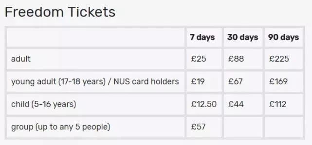 而Freedom Ticket的周期就更长一些,分为7天、30天和90天,同样可以无限制使用,适合会多次前往怀特岛的小伙伴。